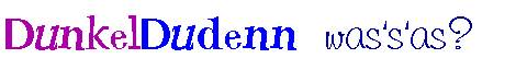 Sinn des DunkelDudennsWer sich also mal so richtig kringelich lachen will, keine Angst vor Bauchschmerzen und Atemnot hat, sollte sich diesen Hypertext bei der nächsten Gelegenheit besorgen, es lohnt sich ...Der DunkelDudenn ist eine Ansammlung blödester Definitionen noch blödererer Worte, die mir im Laufe des letzten Jahres unterkamen. Eigentlich wollte ich ihn gar nicht veröffentlichen, zumal noch nicht alle dreiundsiebzig Buchstaben des Alfabets enthalten sind, aber da man mich so drängelte, und überhaupt habe ich jetzt nach dem Aufräumen der Sammelsurien wieder mehr Platz auf meiner mikroskopisch kleinen Festplatte (Hatte Deine Festplatte eigentlich auch schon ma einen Platten? - So daß sie richtig fest saß?).