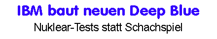 Nach den Erfolgen von Deep Blue gegen Schachweltmeister Garry Kasparow entschlossen sich das US-Energieministerium und das Lawrence Livermore National Laboratory, erneut einen Super-Computer in Auftrag zu geben. Der Rechner soll bis zum Jahr 2000 fertiggestellt sein und unter anderem zur Simulation von Nukleartests dienen. Das 85 Millionen US-Dollar teure Projekt wird von IBM auf der Basis einer weiterentwickelten RS/6000-Architektur erstellt. Dutzende von PowerPC und Power-2-RISC-Prozessoren sollen dem Hochleistungs-Giganten zu 10 Billionen Rechenoperationen pro Sekunde verhelfen.