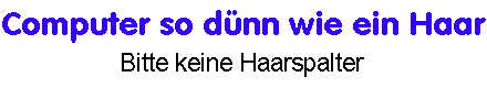 Science-Fiction-Autoren haben sich offensichtlich nicht getäuscht: Sharp und SEL ist es jetzt gelungen, einen echten Display-Computer herzustellen: Der Prozessor liegt als hauchdünne Schicht auf einer Glasplatte. Die CGS-Technologie (Continous Grain Silicon) ermöglicht es Elektronen außerdem, bis zu 600 mal schneller als bisher durch die Leiterbahnen zu rasen - ein enormer Geschwindigkeitszuwachs. Sven Stegemann, Produktmanager bei Sharp: "Unsere Vision ist ein PC, dessen Bestandteile auf verschiedenen Bereichen einer Glasplatte untergebracht sind." Captain Picard von der Enterprise läßt grüßen.