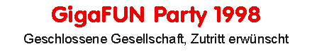 So könnte man die diesjährige GigaFUN Party bezeichnen, die diesmal zeitgleich mit der Quast Party in Polen vom 6.8. bis zum 9.8.1998 in Strasbourg stattfand.