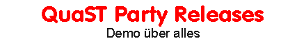 Die auf der Party veröffentlichten Demos allerdings habe ich mir selbstverständlich nicht entgehen lassen und sie mir angesehen. Zwar war von vornherein klar, daß die auf der QuaST Party gezeigten Demos weitaus vielversprechender waren als die auf der GigaFUN releasten, aber so zahlreich wie auf großen vergangenen Parties, wie der Siliconvention 97 oder der GigaFUN 96 waren sie dann doch nicht. Trotzdem meinen Glückwunsch an alle, die eine Demo auf die Beine gestellt haben, denn gut waren die wirklich alle.