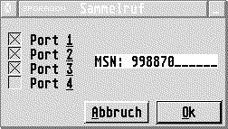 Der Sammelruf bewirkt, daß die ausgewählten Ports, außer über die ihnen bereits zugewiesene MSN, über eine Sammelruf-MSN erreichbar sind. So können z.B. die Apparate an den Ports 1, 2 und 3 zusätzlich über die Nummer 998870 erreicht werden.