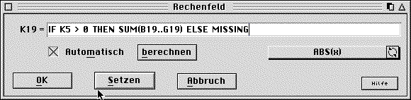 Neu in diesem Zuge ist auch der Feldtyp "Missing". Dieses bedeutet, daß das so bezeichnete Feld leer bleibt. Auf diese Art und Weise kann man auch Felder vor versehentlichem Hineinschreiben schützen. Selbst ineinanderverschachtelte Bedingungen sind möglich. Hierfür sind dann Klammern zu setzen.