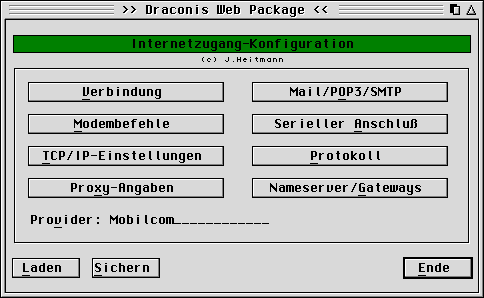 Diese Daten liegen nämlich in einer Datei auf dem Bootlaufwerk, also allgemein C:\. Diese Datei läßt sich leider nicht mit einem ASCII-Editor bearbeiten, sonst hätte man sich dieses Programm sparen können; ich sehe da keinen wesentlichen Vorteil. Leider wurden jedoch die Pfade für den FTP- und den Telnet-Client vergessen; in der INF-Datei sind sie aber vorhanden. Hier zeigt sich deutlich ein Nachteil einer Nicht-ASCII-Datei.