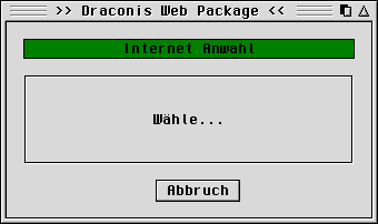 Hat man "Wählen" angeklickt, erscheint ein Dialog, der einem den momentanen Status anzeigt (initialisiere, wähle, Verbindungskontrolle...).