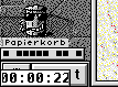 Mit einem Einfachklick auf dieses Fenster läßt es sich toppen und anschließend mit gedrückter Maustaste verschieben. Durch Doppelklick in das Zeitfenster öffnet sich wieder der Dialup-Dialog, so daß man die Verbindung beenden kann.