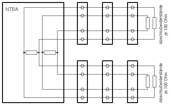 Der NTBA verfügt allerdings über zwei S0-Bus-Anschlüsse. Wenn diese auch genutzt werden, müssen auch beide Enden des Busses abgeschlossen werden. Die beiden Widerstände im NTBA können nicht entfernt werden. Sie stören aber auch nicht.