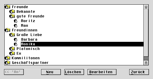Zu diesem Zweck lassen sich beliebige Ordner und Unterordner anlegen, in die man die Adressen einsortiert, ganz so, wie man es von einem Dateisystem gewöhnt ist; übrigens arbeitet die Hotlist-Funktion von Adamas nach dem gleichen Prinzip.